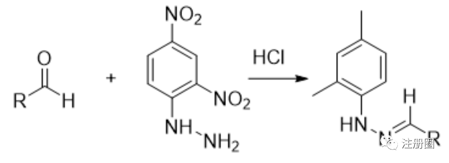 很多醛、酮类化合物可以直接通过GC或HPLC方法检测,醛、酮基团的极性小、保留不存在问题。大多数情况下使用柱前衍生法主要为了解决响应问题。醛、酮类化合物常用的衍生试剂为肼类化合物。