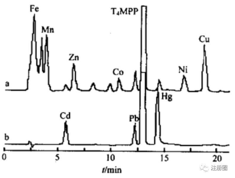 案例 | 衍生原理及色谱图 | 色谱条件 | | | HPLC-紫外: 色谱柱:Thermo Hypersil GOLD C18,4.6×150mm,5μm 流速:1.0ml/min 柱温:33℃ 波长:270nm 甲醇-水=60:40 (v/v)等度洗脱 | | | HPLC-紫外: 色谱柱:Waters Xterra RP C18,3.9×150mm 流速:1.0ml/min;波长:Cd-435nm、Pb-465nm、Hg-450nm MpA:甲醇(内含0.01M的四氢吡咯-醋酸缓冲盐) MpB:四氢呋喃(内含0.01M的四氢吡咯-醋酸缓冲盐) 梯度洗脱: |