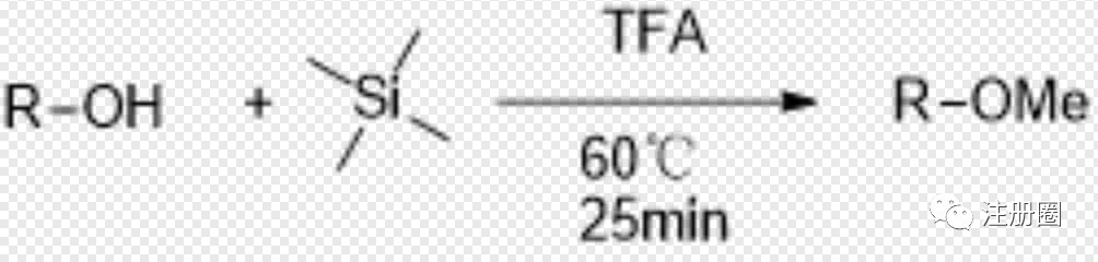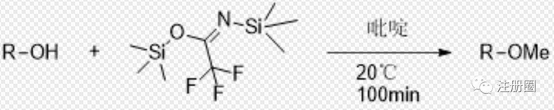 羟基理论上与酰卤、酸酐、氨基等均会反应,比如前文提到的酰氯的衍生——醇解,反过来用酰氯衍生醇也是可以的。羟基常用的衍生方式为使羟基甲基化后使用GC检测。