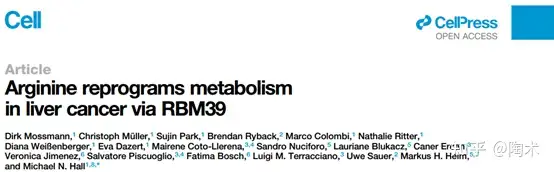 [1] Mossmann D, Müller C, Park S, et al. Arginine reprograms metabolism in liver cancer via RBM39 [published online ahead of print, 2023 Sep 26]. Cell. 2023;S0092-8674(23)01032-2. doi:10.1016/j.cell.2023.09.011