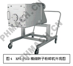 德国Alexanderwerk公司设计出了一种新型的、适用于批量生产用的Roter Fine Granulator 250D(以下简称RFG 250)系列精细转子粉碎机(如图4),能够广泛用于化工、制药行业的粉碎过程。